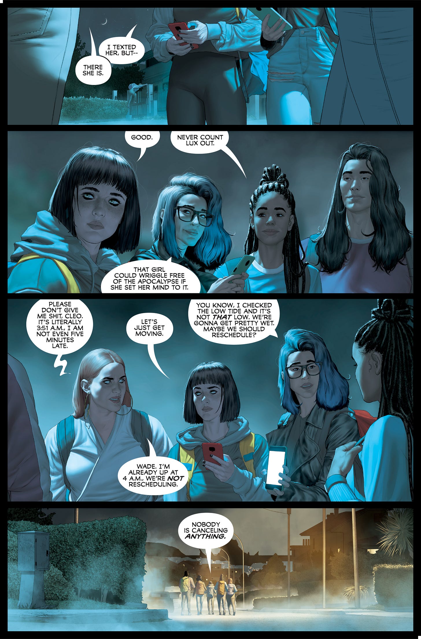 What Thompson does so well—and always does so well in any book she tackles—is let you get to know the characters first before throwing them into the deep of adventure. But at the same time, she smartly holds back, keeping as many secrets about the seemingly-fractured relationship of this teenaged cohort as she does about the terrors that await them. De Iulis’ art is gorgeous as always, but also haunting, especially when highlighting the shadows of night, which mimics what is being obscured about these teen’s relationships. And Otsmane-Elhaou shows once again why he’s an industry legend, allowing the lettering to reveal rather than distract.